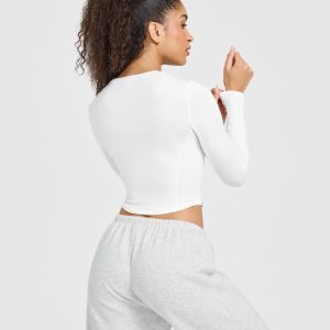 Mellow™ Rib Square Neck Mid Vest with Built in Bra Shelf White