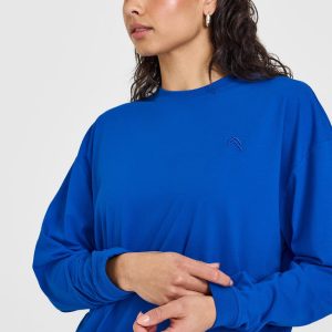 Classic Oversized Lightweight Long Sleeve Top Cobalt Blue
