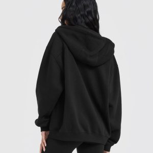 Lightweight Zip Through Hoodie With Athletic Graphic Soft Black