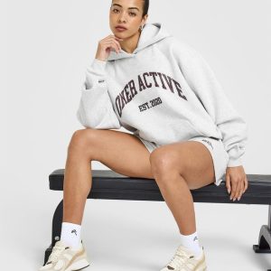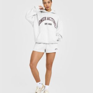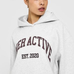 Foundations Oversized Hoodie With Large Printed Graphic Light Grey Marl