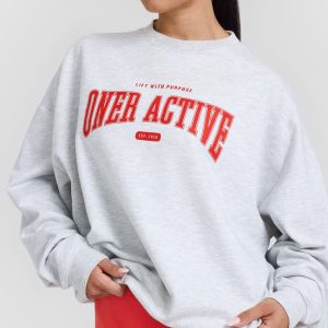 Lightweight Sweatshirt with Red Graphic Light Grey Marl