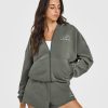 Lightweight Zip Through Hoodie With Athletic Graphic Soft Black