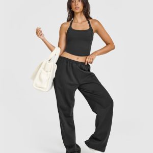 Mellow™ Rib Halter Neck Mid Vest with Built in Bra Shelf Soft Black