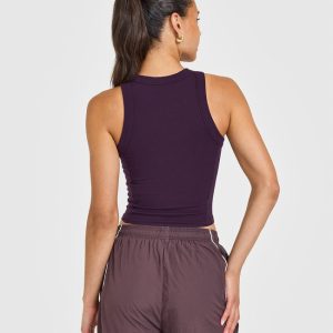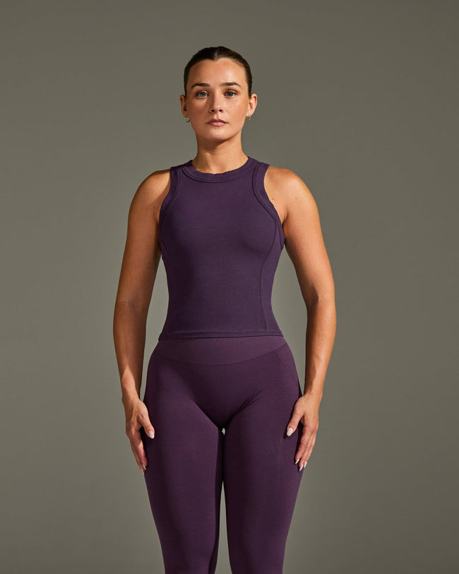 Mellow™ Rib High Neck Mid Tank Top Blackberry Purple