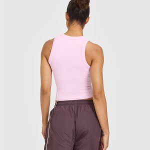 Mellow™ Rib High Neck Mid Tank Top Chalk Pink