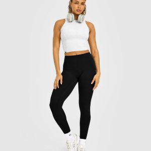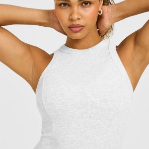 Mellow™ Rib High Neck Mid Tank Top Light Grey Marl