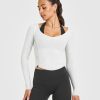 Mellow™ Rib V Neck Long Sleeve Top Light Grey Marl