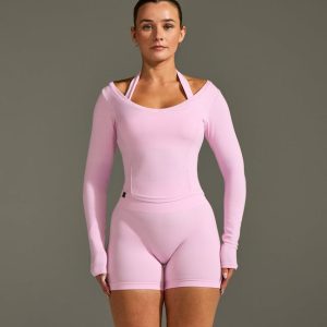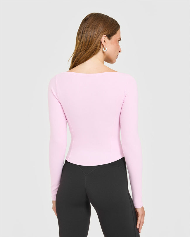 Mellow™ Rib V Neck Mid Long Sleeve Top Chalk Pink