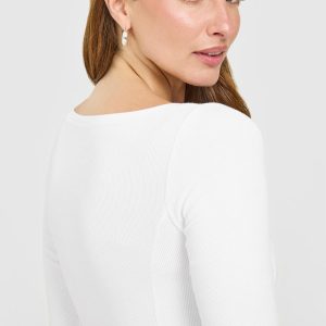 Mellow™ Rib V Neck Mid Long Sleeve Top White