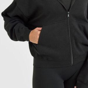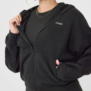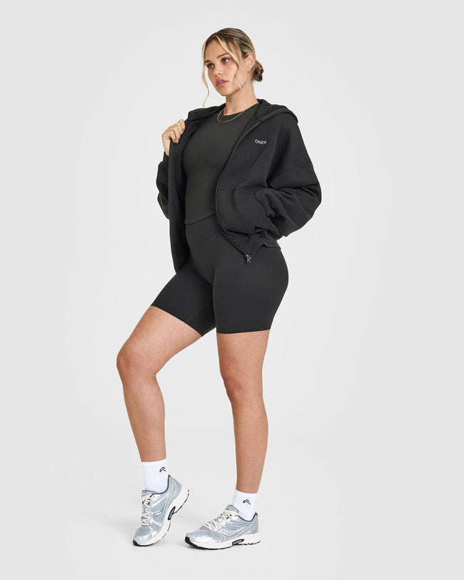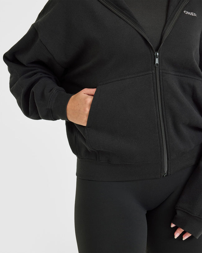 Mid Weight Zip Through Hoodie Soft Black