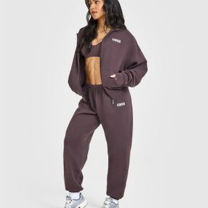 Oversized Piped Woven Straight Leg Track Bottoms Deep Umber Brown