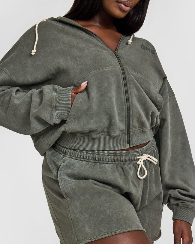 Raw Lounge Oversized Zip Hoodie Washed Dark Khaki