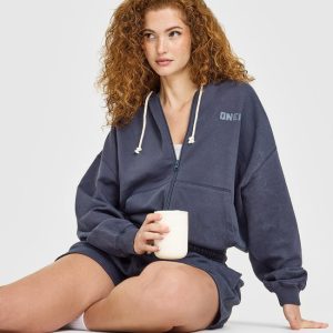 Raw Lounge Oversized Zip Hoodie Washed True Blue