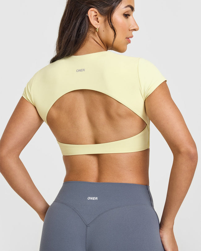 SoftMotion™ Short Sleeve Crop Top Pastel Yellow