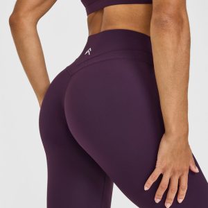 Unified High Waisted Leggings White Logo Blackberry Purple
