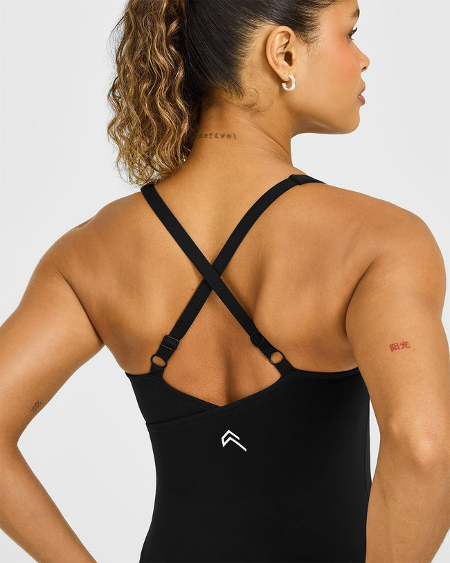 Unified V Neck Cross Back Vest White Logo Black